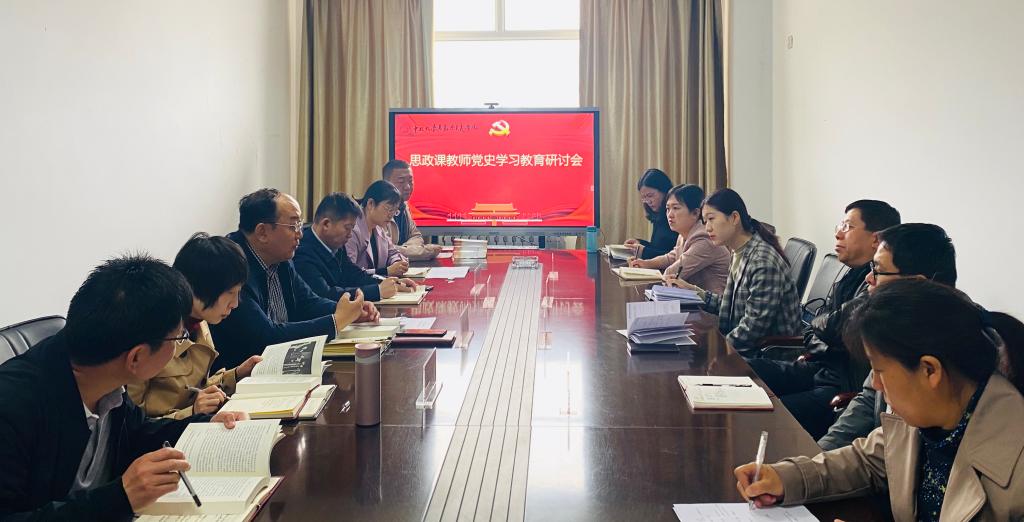 段义权就学院和思政课教师近期党史学习教育工作进展进行汇报。党史学习教育开展以来,学院严格按照学校党委的要求完成党史学习教育的规定动作,并结合学院特点和专业优势,在党史学习教育中做好自选动作,将党史教育与思政课深度融合,举办高校思政课融入党史教育的集体备课,邀请省内高校党史专家为学院师生作专题报告,组织学院思想政治教育专业的研究生进行“大学生讲党史”竞赛,选拔优秀学生组成“知行宣讲团”,学院为所有师生党员购买党史学习教育相关资料,组织部分思政课教师编辑《中共党史知识1000题》等。随后,段义权带头领学了《中国共产党简史》第五章、第六章相关内容。与会教师就自己学习该段党史的心得体会进行交流和分享。