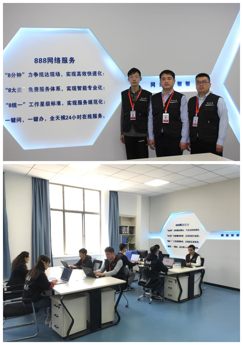 “888”网络服务旨在提高响应速度,明确服务标准,确定服务体系,提升服务质量,紧紧围绕“师生体验”,努力把网络服务中心建成凝聚师生的“便利”窗口、“办事”窗口、“形象”窗口和“文明”窗口,力争做让师生满意的信息化。