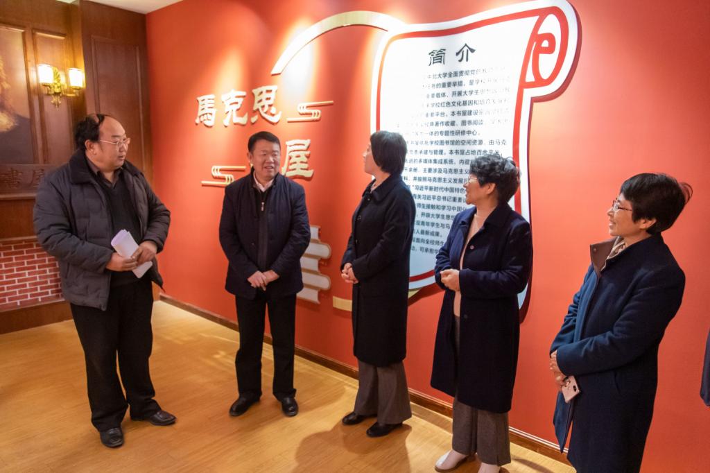 汇报会后,评估组走访了马克思主义学院办公楼、马克思书屋、中北军工文化园等,实地了解了我校马克思主义学院发展情况、思政课教育特色亮点;并通过查阅资料、领导访谈、师生代表座谈和随堂听课等方式,对我校思想政治理论课建设情况进行了全面细致的检查评估。